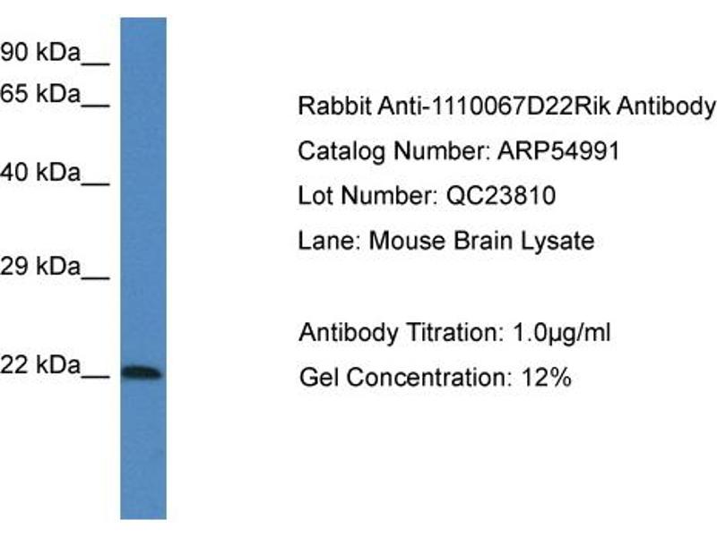 - This is a rabbit polyclonal antibody against 1110067D22Rik. It was validated on Western Blot.