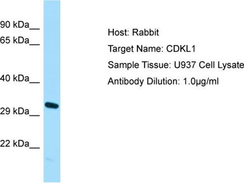 This is a rabbit polyclonal antibody against CDKL1. It was validated on Western Blot.