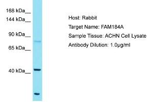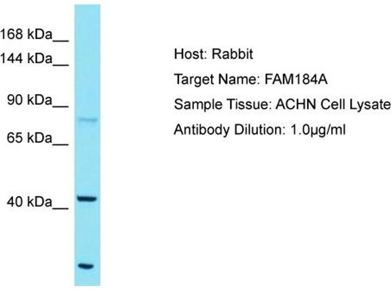 This is a rabbit polyclonal antibody against FAM184A. It was validated on Western Blot.