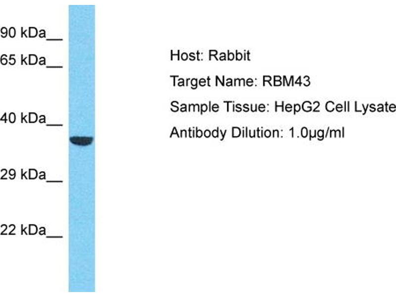 This is a rabbit polyclonal antibody against RBM43. It was validated on Western Blot.