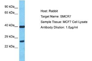 The immunogen is a synthetic peptide directed towards the N-terminal region of Human SMCR7