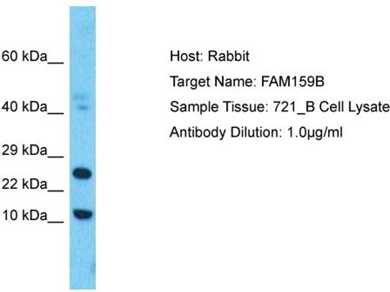 This is a rabbit polyclonal antibody against FAM159B. It was validated on Western Blot.