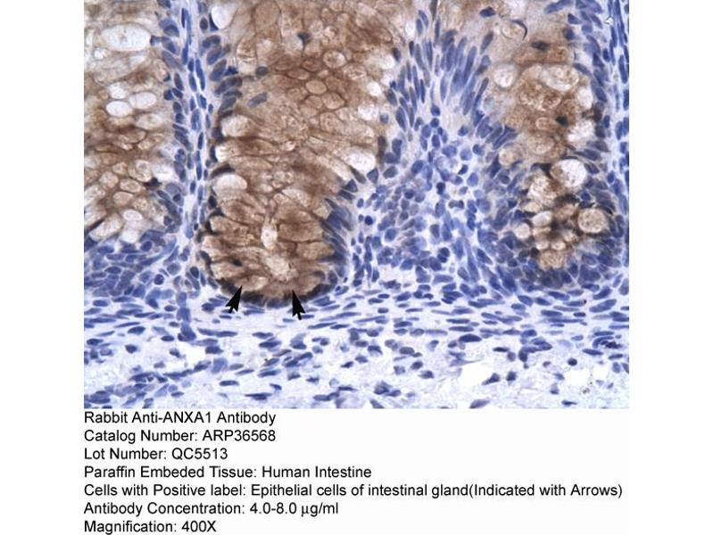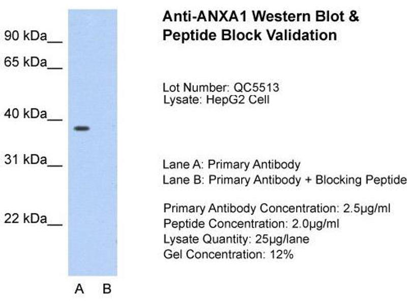 - The immunogen is a synthetic peptide directed towards the N terminal region of human ANXA1