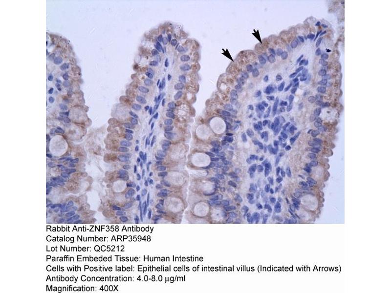 - The immunogen is a synthetic peptide directed towards the N terminal region of human ZNF358