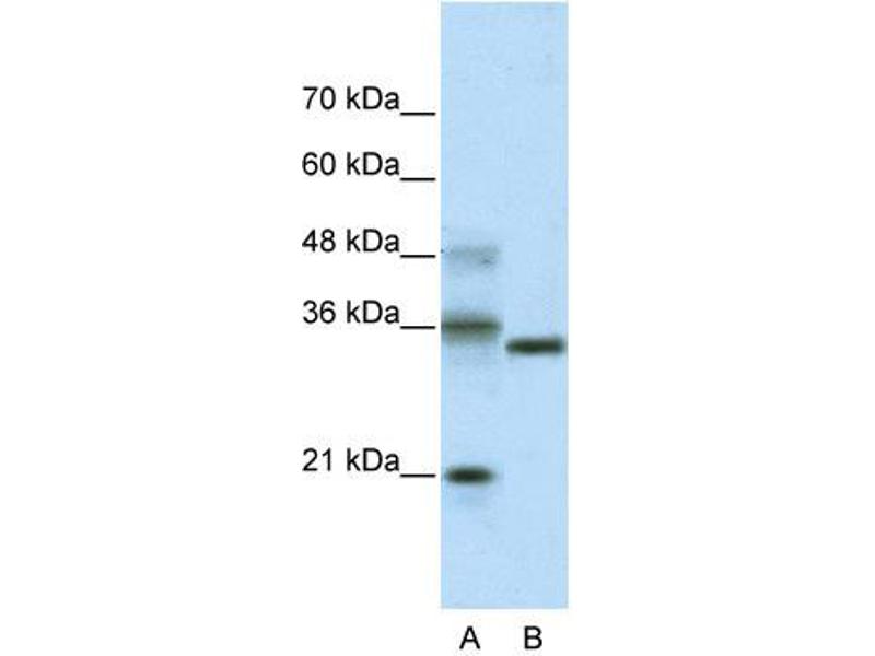 The function remains unknown.Western blots using two different antibodies against two unique regions of this protein target confirm the same apparent molecular weight in our tests.