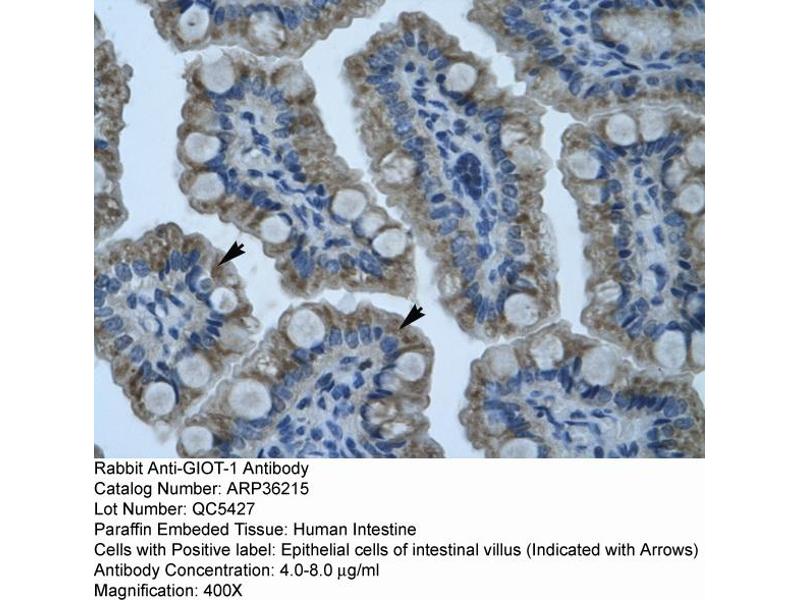 - The immunogen is a synthetic peptide directed towards the N terminal region of human GIOT-1