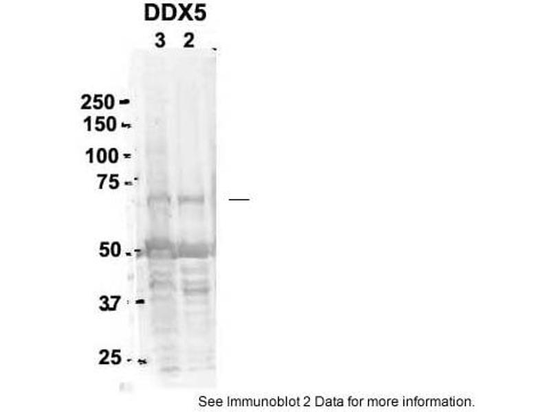 - The immunogen is a synthetic peptide directed towards the C terminal region of human DDX5