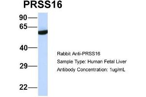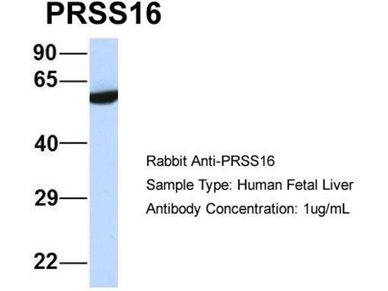 - This is a rabbit polyclonal antibody against PRSS16. It was validated on Western Blot using a cell lysate as a positive control.