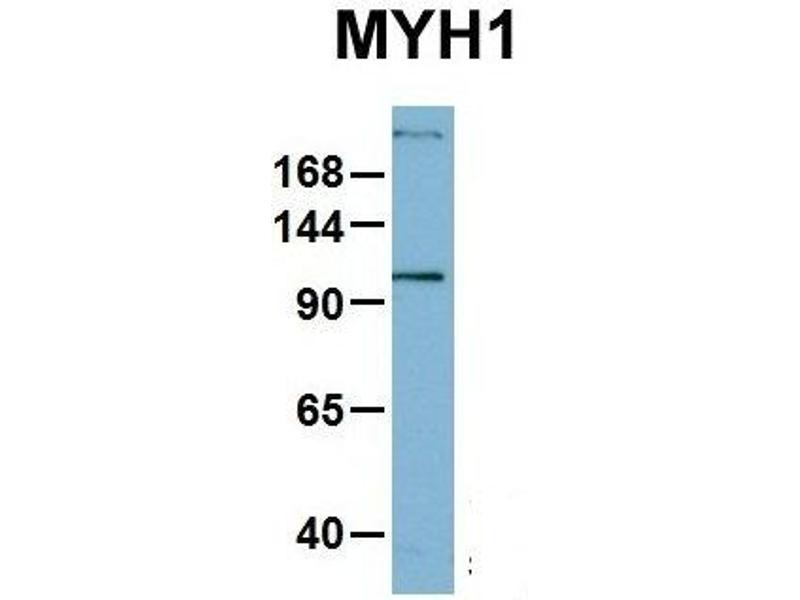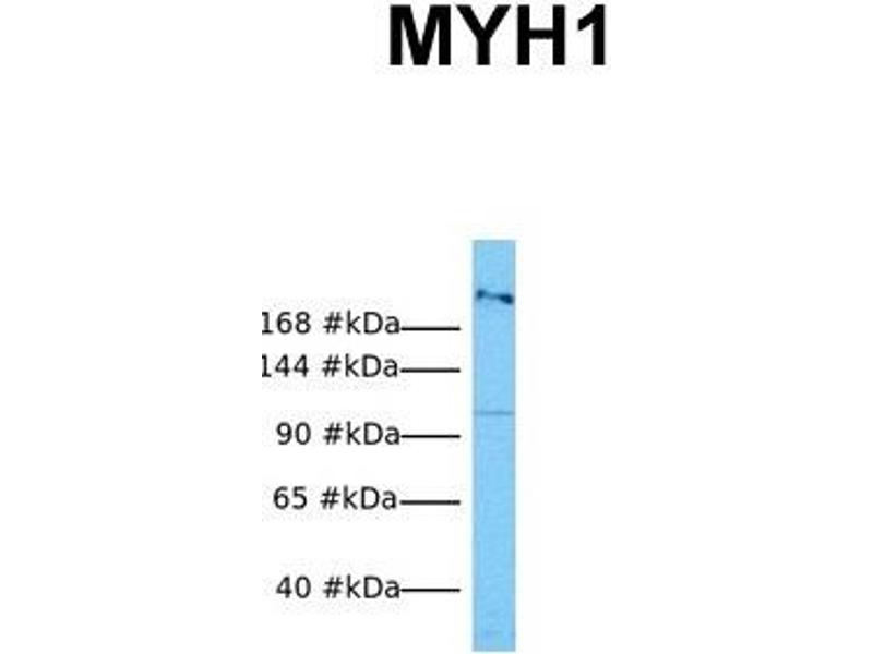 - This is a rabbit polyclonal antibody against MYH1. It was validated on Western Blot using a cell lysate as a positive control.