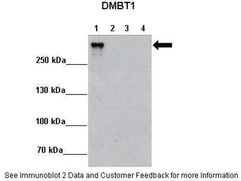 - This is a rabbit polyclonal antibody against DMBT1. It was validated on Western Blot using a cell lysate as a positive control.