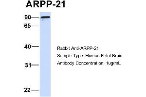- This is a rabbit polyclonal antibody against ARPP-21. It was validated on Western Blot using a cell lysate as a positive control.