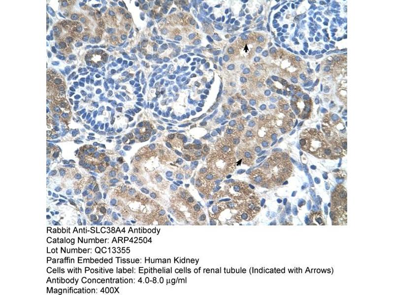 - This is a rabbit polyclonal antibody against SLC38A4. It was validated on Western Blot and immunohistochemistry.