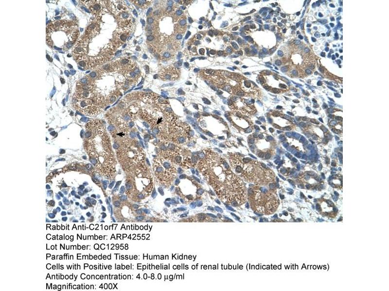 - This is a rabbit polyclonal antibody against C21orf7. It was validated on Western Blot and immunohistochemistry.