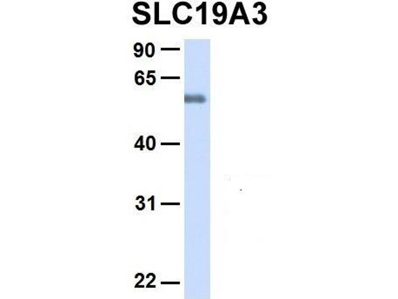 - This is a rabbit polyclonal antibody against SLC19A3. It was validated on Western Blot using a cell lysate as a positive control.