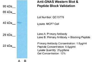 - This is a rabbit polyclonal antibody against GNAS. It was validated on Western Blot using a cell lysate as a positive control.
