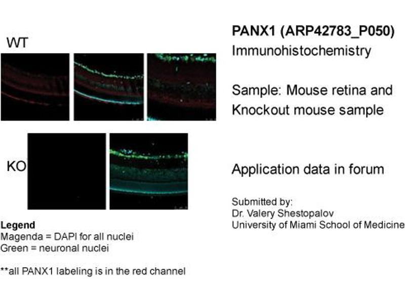 - This is a rabbit polyclonal antibody against PANX1. It was validated on Western Blot and immunohistochemistry.