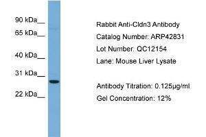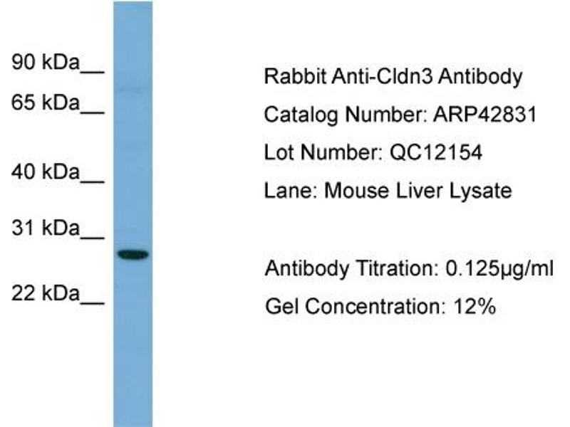 This is a rabbit polyclonal antibody against Cldn3. It was validated on Western Blot.