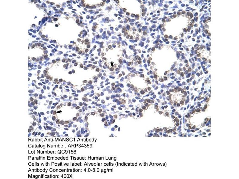 - This is a rabbit polyclonal antibody against MANSC1. It was validated on Western Blot and immunohistochemistry.