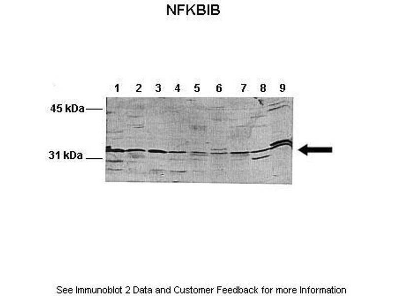 - This is a rabbit polyclonal antibody against NFKBIB. It was validated on Western Blot using a cell lysate as a positive control.