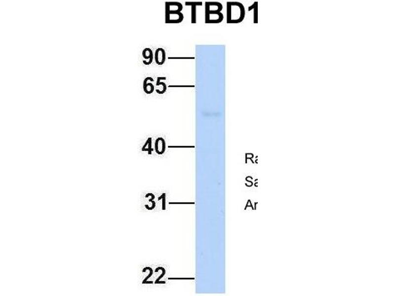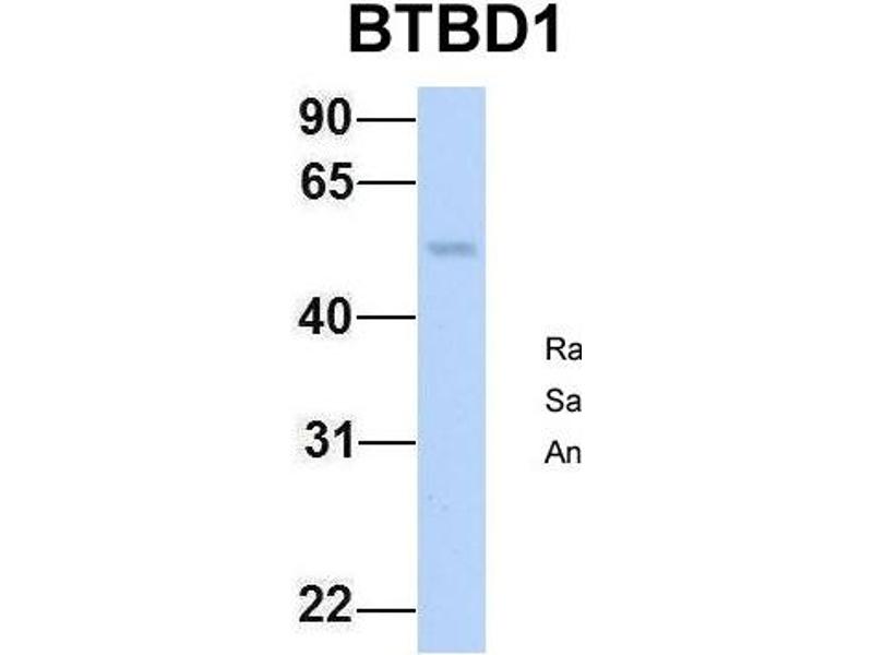 - This is a rabbit polyclonal antibody against BTBD1. It was validated on Western Blot using a cell lysate as a positive control.