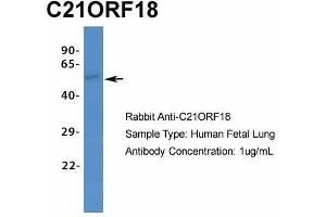 - This is a rabbit polyclonal antibody against C21ORF18. It was validated on Western Blot using a cell lysate as a positive control.