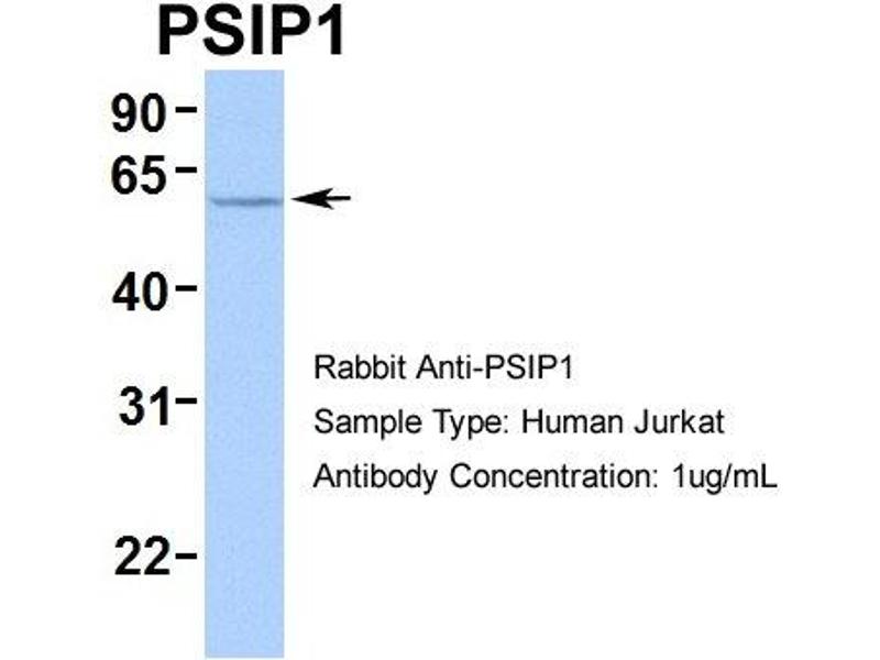- This is a rabbit polyclonal antibody against PSIP1. It was validated on Western Blot using a cell lysate as a positive control.
