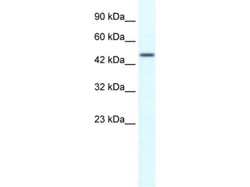 This is a rabbit polyclonal antibody against TRIM39. It was validated on Western Blot using a cell lysate as a positive control.