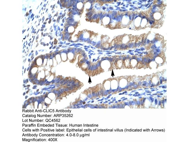 - The immunogen is a synthetic peptide directed towards the middle region of human CLIC5