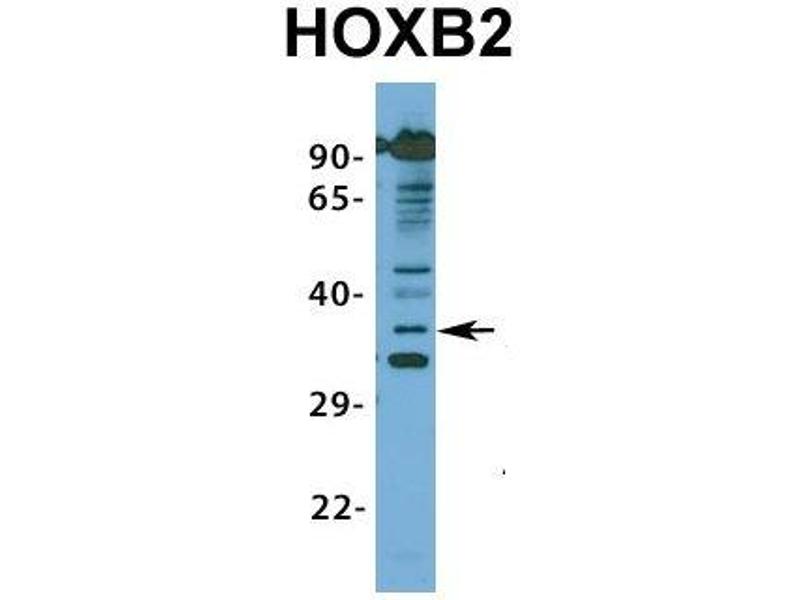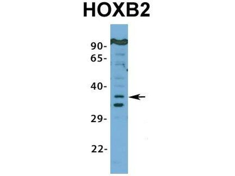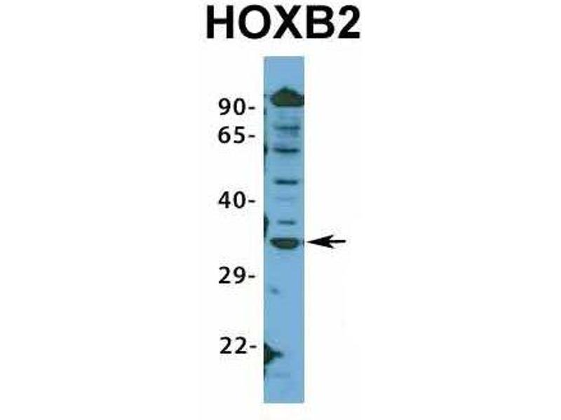 - This is a rabbit polyclonal antibody against HOXB2. It was validated on Western Blot using a cell lysate as a positive control.