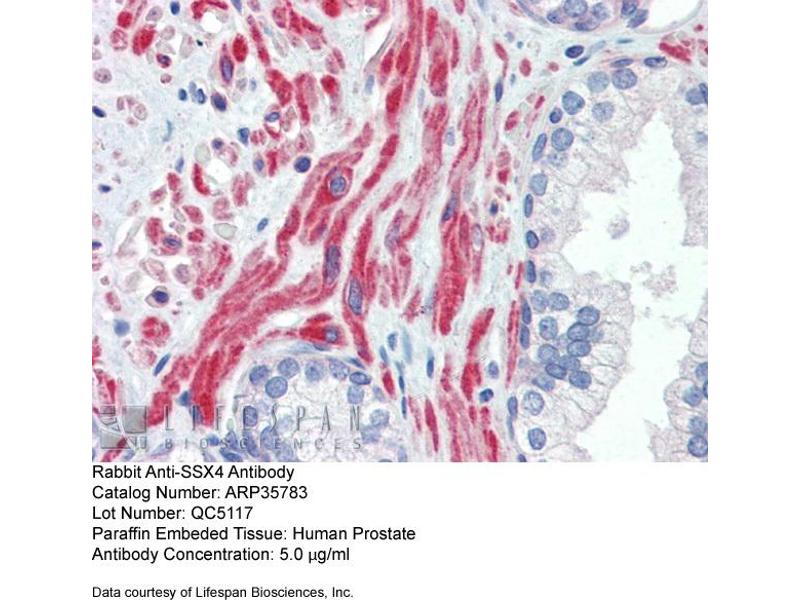 - The immunogen is a synthetic peptide directed towards the middle region of human SSX4