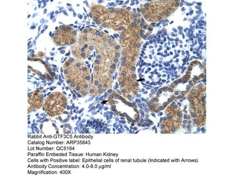 - This is a rabbit polyclonal antibody against GTF3C5. It was validated on Western Blot and immunohistochemistry.
