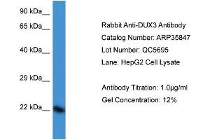 - This is a rabbit polyclonal antibody against DUX3. It was validated on Western Blot.