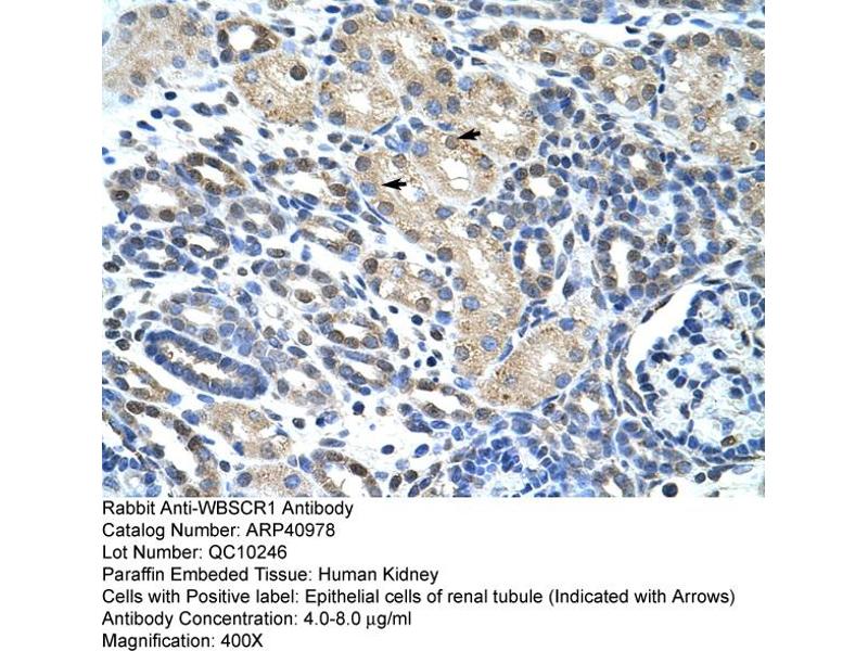 - This is a rabbit polyclonal antibody against WBSCR1. It was validated on Western Blot and immunohistochemistry.