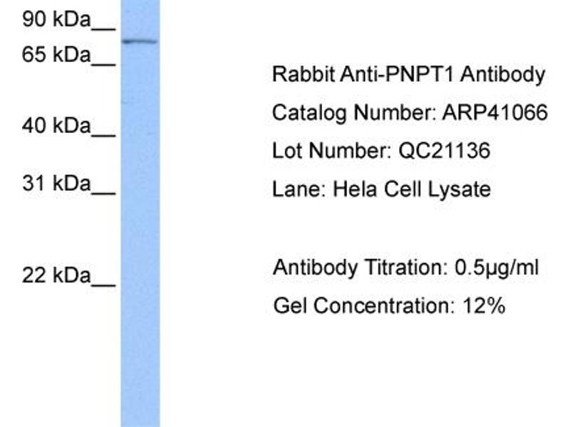 - This is a rabbit polyclonal antibody against PNPT1. It was validated on Western Blot using a cell lysate as a positive control.