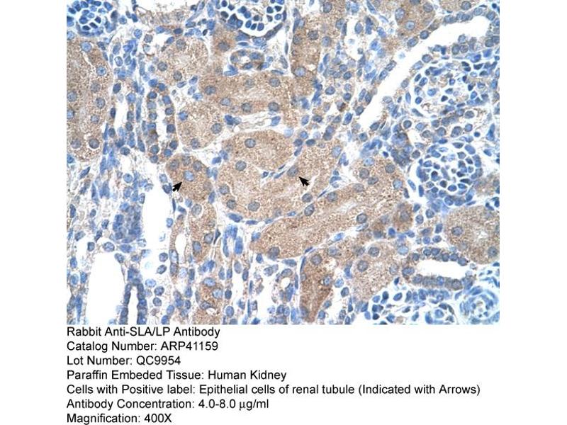 - This is a rabbit polyclonal antibody against SLA/LP. It was validated on Western Blot and immunohistochemistry.
