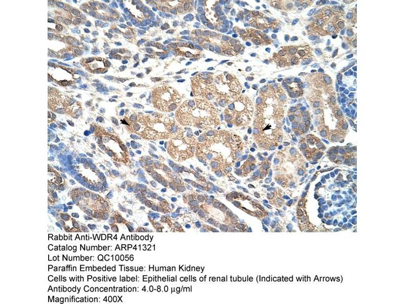 - This is a rabbit polyclonal antibody against WDR4. It was validated on Western Blot and immunohistochemistry.