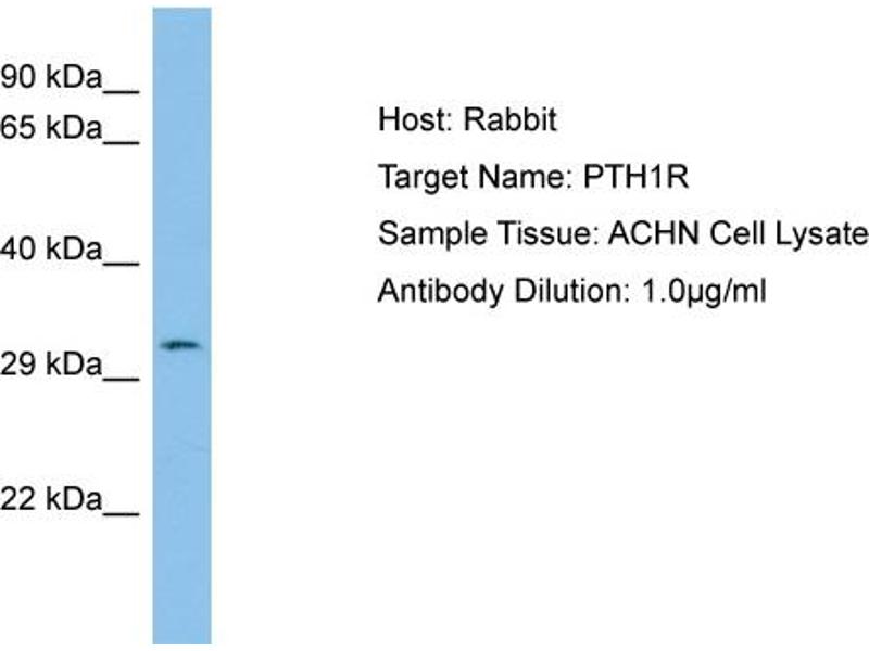 This Rabbit Polyclonal antibody specifically detects PTH1R in WB. It exhibits reactivity toward Human, Rat, Mouse, Cow, Pig, Dog, Horse, Rabbit and Guinea Pig.