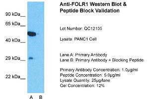 - This is a rabbit polyclonal antibody against FOLR1. It was validated on Western Blot using a cell lysate as a positive control.