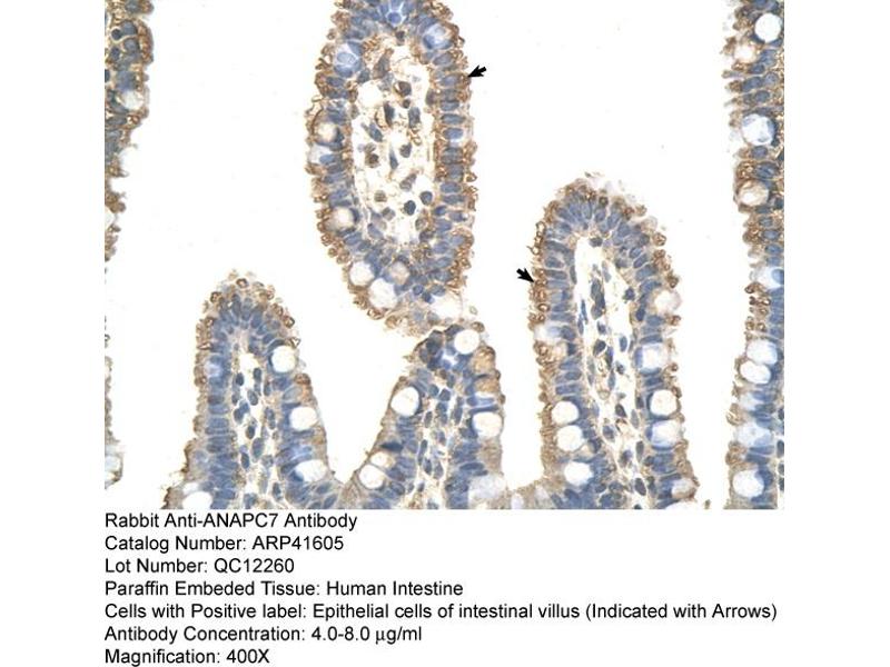 - The immunogen is a synthetic peptide directed towards the C terminal region of human ANAPC7