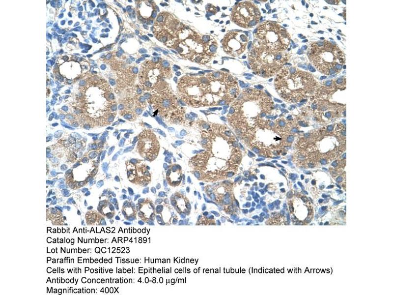- The immunogen is a synthetic peptide directed towards the N terminal region of human ALAS2
