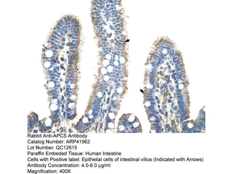 - This is a rabbit polyclonal antibody against APCS. It was validated on Western Blot and immunohistochemistry.