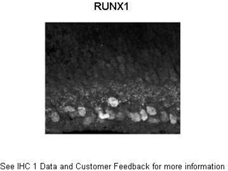 - The immunogen is a synthetic peptide directed towards the middle region of human RUNX1