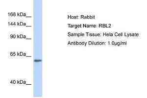 This is a rabbit polyclonal antibody against RBL2. It was validated on Western Blot.