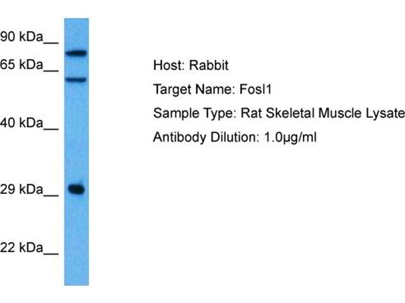 - This is a rabbit polyclonal antibody against FOSL1. It was validated on Western Blot and immunohistochemistry.