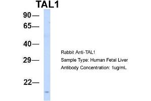 - This is a rabbit polyclonal antibody against TAL1. It was validated on Western Blot using a cell lysate as a positive control.