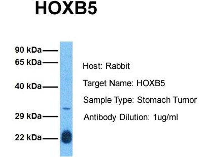 - This is a rabbit polyclonal antibody against HOXB5. It was validated on Western Blot and immunohistochemistry.
