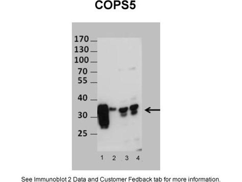 Quick Overview for COPS5 antibody (N-Term) (ABIN2777332)