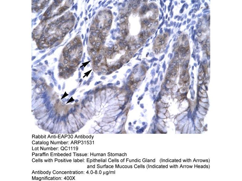 - The immunogen is a synthetic peptide directed towards the N terminal region of human EAP30