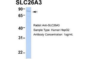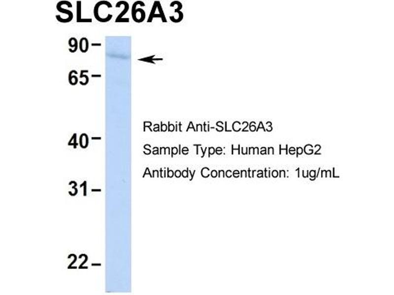 - This is a rabbit polyclonal antibody against SLC26A3. It was validated on Western Blot using a cell lysate as a positive control.