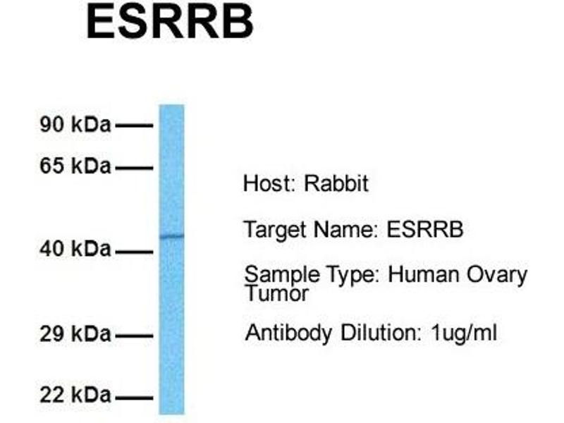 - This is a rabbit polyclonal antibody against ESRRB. It was validated on Western Blot using a cell lysate as a positive control.